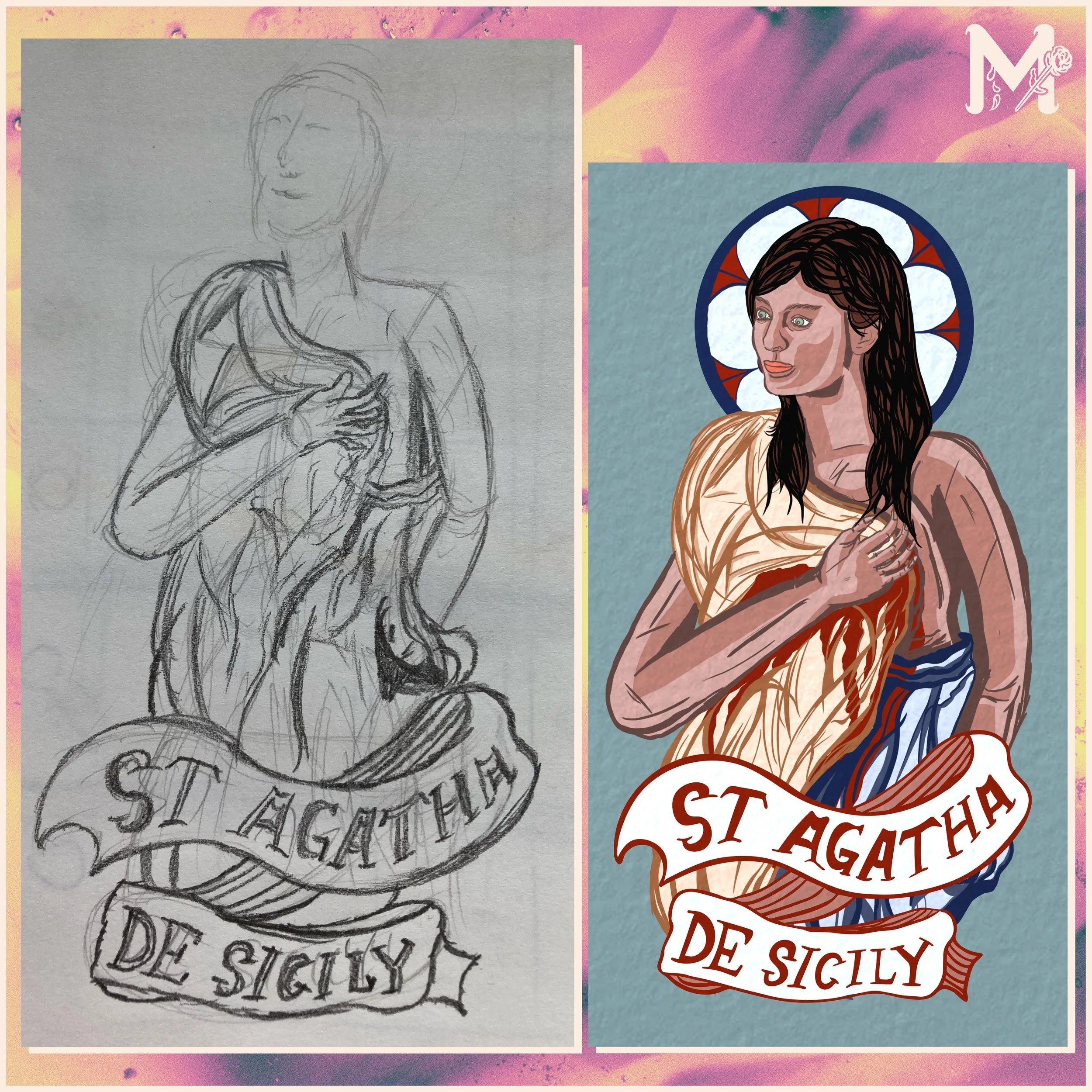 I’ve been fascinated by Agatha for many years, long before I illustrated and designed her. She’s one of those Roman martyrs that just intrigues with her story.