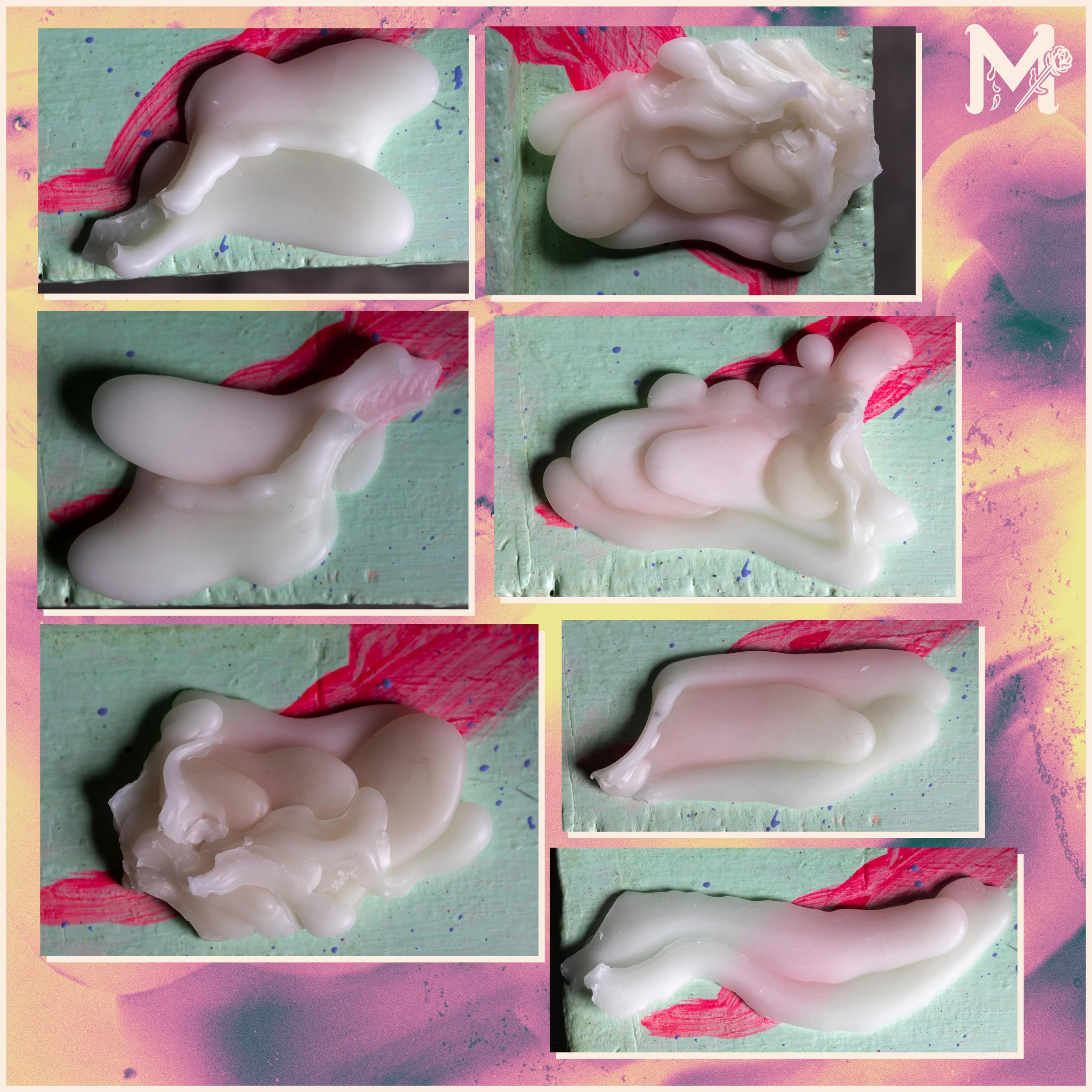 I felt the same way about candle wax at the end of an event my friends hosted. They used so many candles and said the melted down wax was to be chucked. Well I chucked them home to take these photos because once again, I saw potential for lava. I didn’t expect this to be used for Agatha, but it turned out to work nicely for her lava.