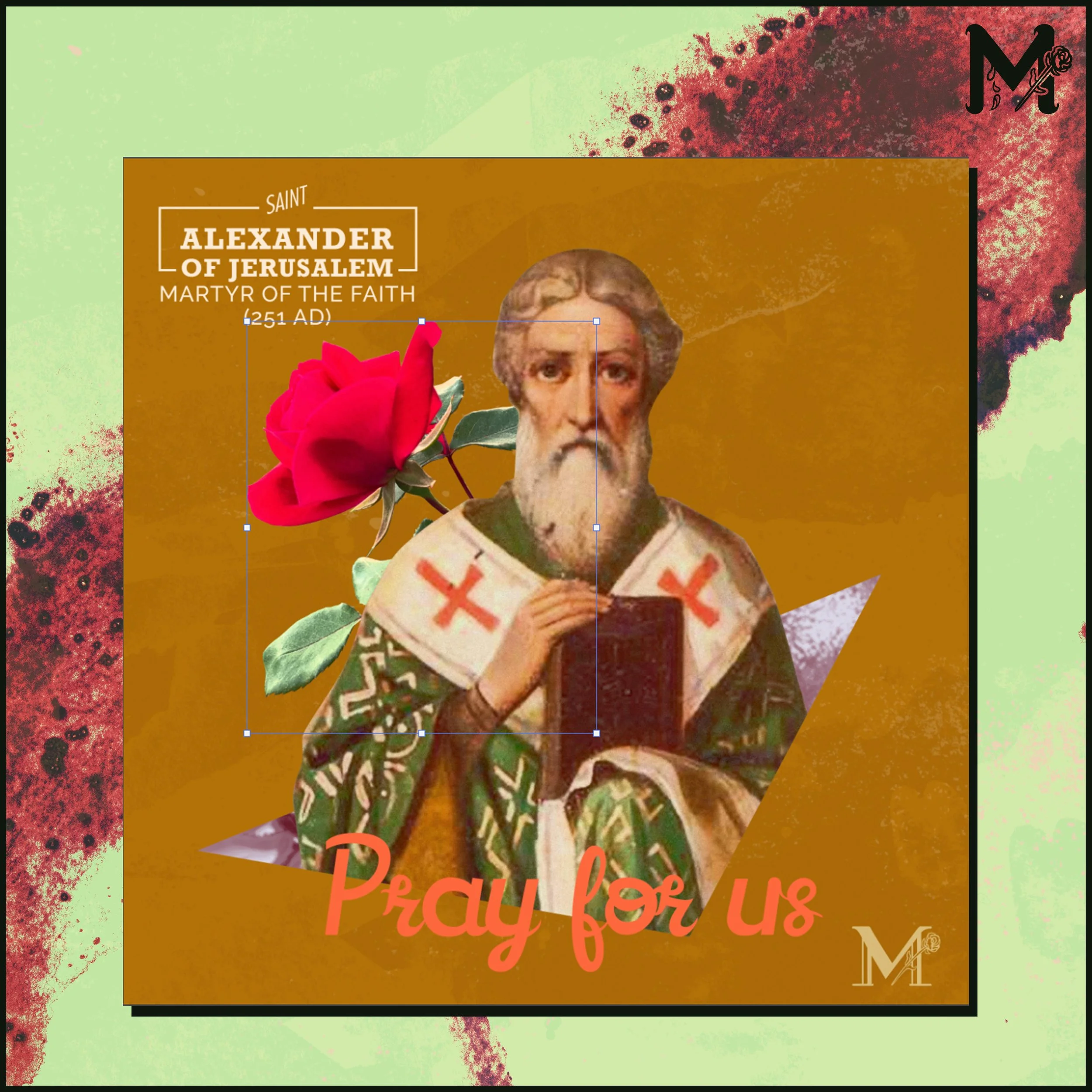 After Alexander was imprisoned for the faith the first time, he journeyed to Jerusalem and became bishop. He created a library and allowed Origen, a layman to preach in the churches before the man was ordained a priest. His warm nature aligns with legend. When he was sentenced to death, the wild animals were supposed to harm him, but licked his feet instead. He died in chains as a martyr.