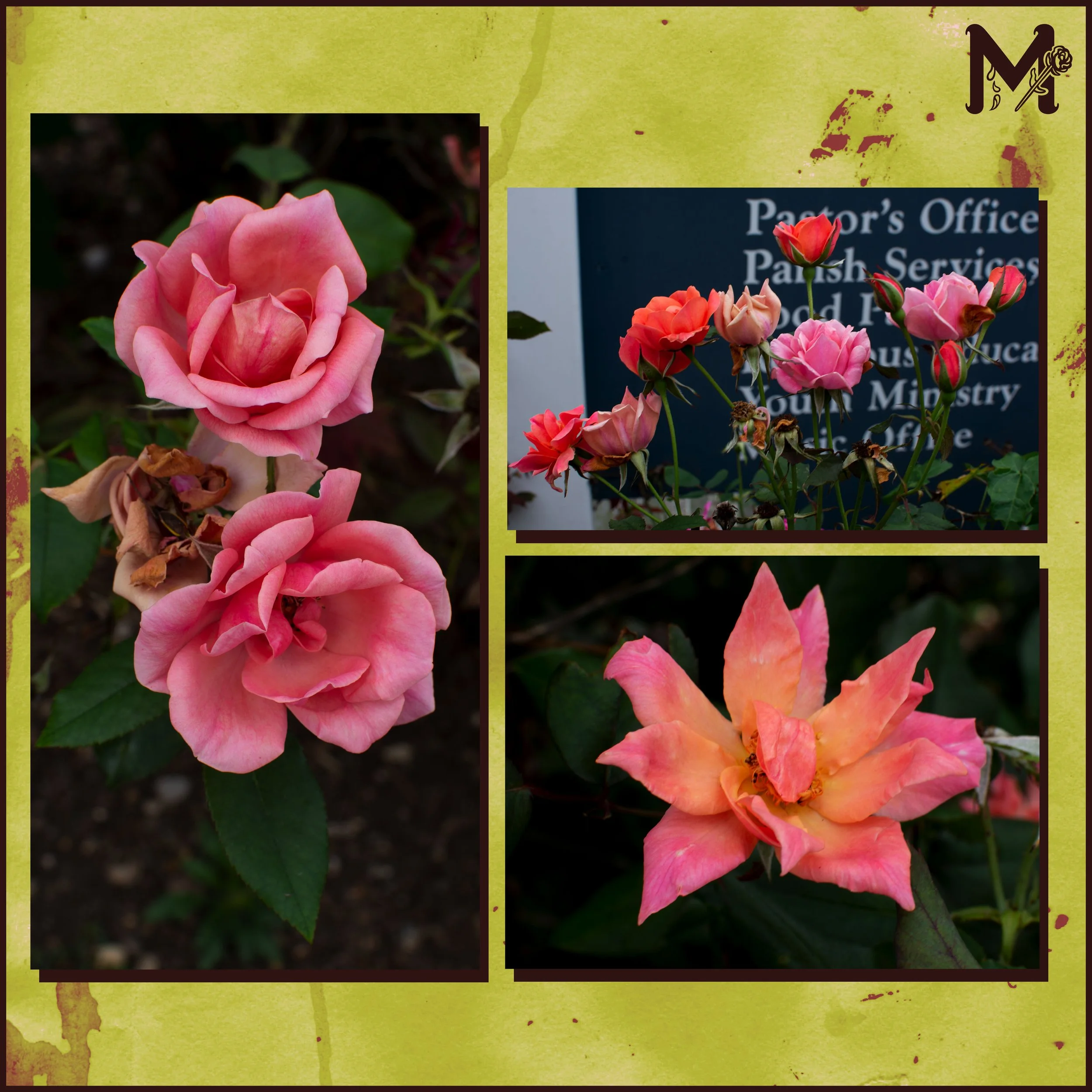 I took these photos in the garden next to Our Lady of Mercy Church. I wanted to integrate the actual location with the images. I made them orange for Joseph to have his own special roses.