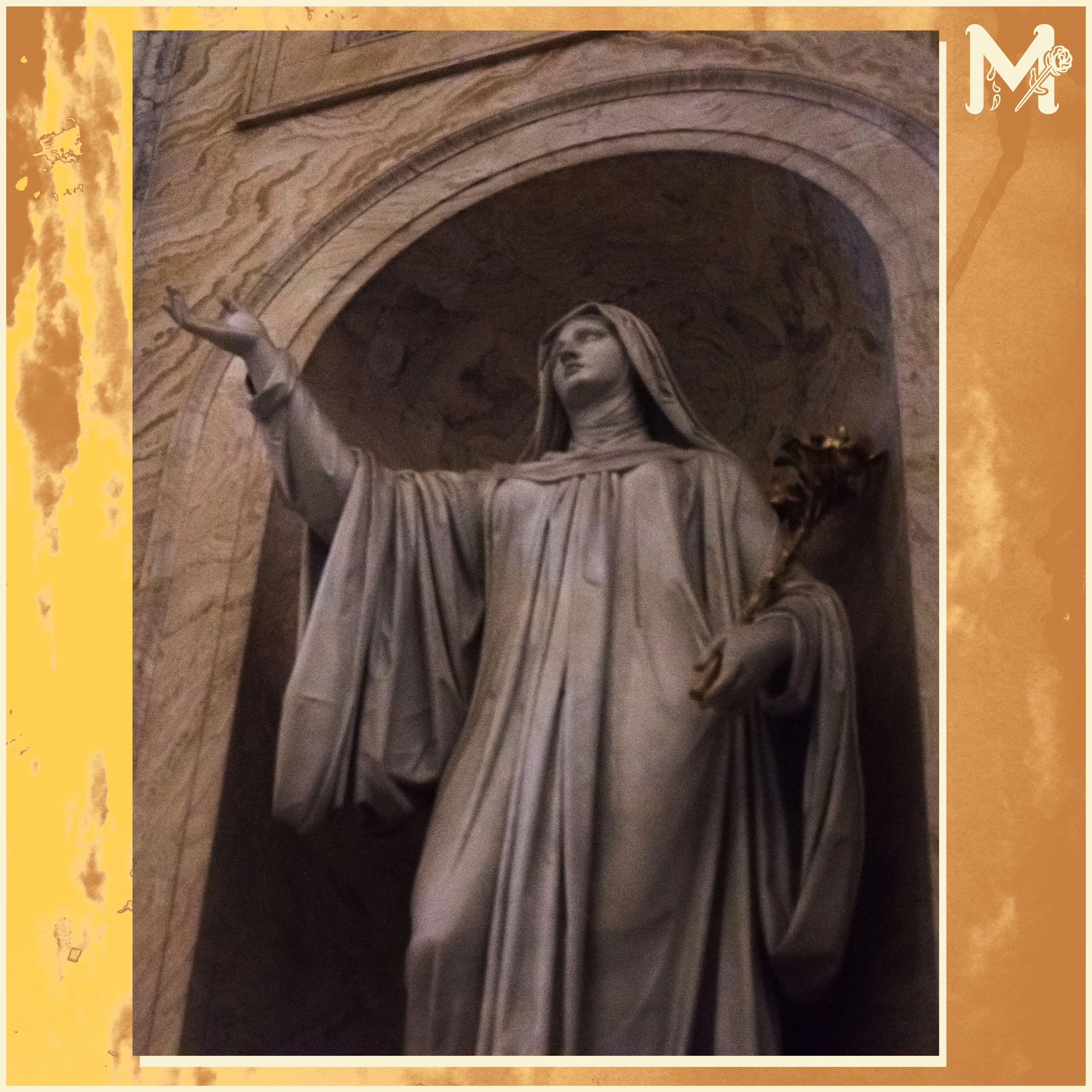 Scholastica is the twin sister of St. Benedict. They grew up together and each chose to live the religious life in line with Benedict's rules. In one instance, her brother refused to stay the night because of his rules. She had an intuition that she would die soon and wanted to spend time with him. Her prayers were answered in form of a nasty rainstorm that prevented him from leaving.